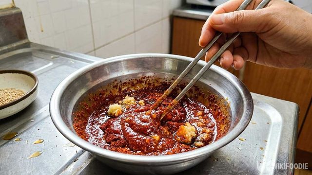 채소는 주꾸미보다 먼저 넣어 반쯤 익혀두고, 주꾸미가 반 정도 익었을 때 양념장을 투입해 센 불에서 빠르게 마무리하면 된다. 마지막에 참기름과 깨소금을 뿌리고, 찬물에 담가 숨을 살린 대파채와 깻잎채를 올리면 아삭한 식감이 더해져 완성도가 한층 올라간다.