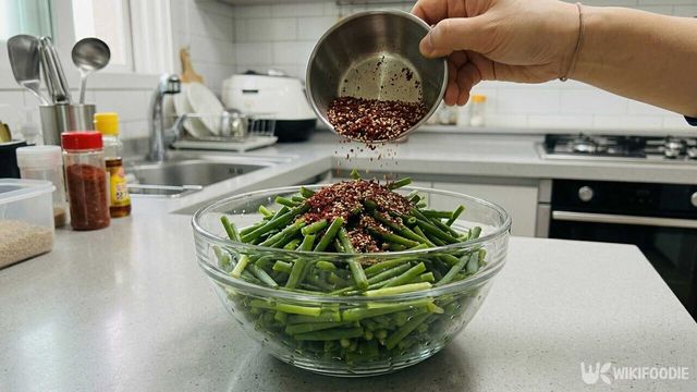 데친 뒤에는 물기를 비틀어 짜지 않고 손으로 눌러 제거하는 것이 좋다. 그래야 조직이 살아 있어 씹을 때 아삭한 느낌이 유지된다. 간단한 과정이지만 결과 차이는 확실하게 느껴진다.