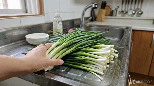 → 쪽파 320g, 진간장 1큰술, 고운 고춧가루 1큰술, 참기름 1큰술, 통깨 1큰술, 소금 1큰술, 물 1.5L