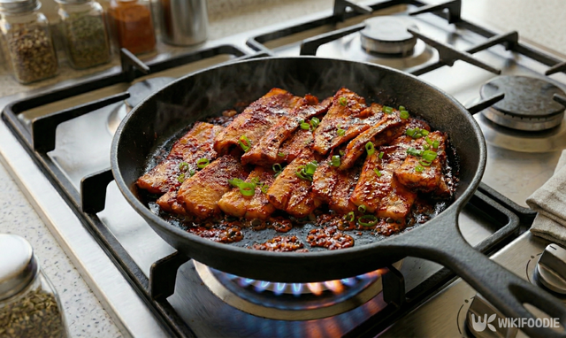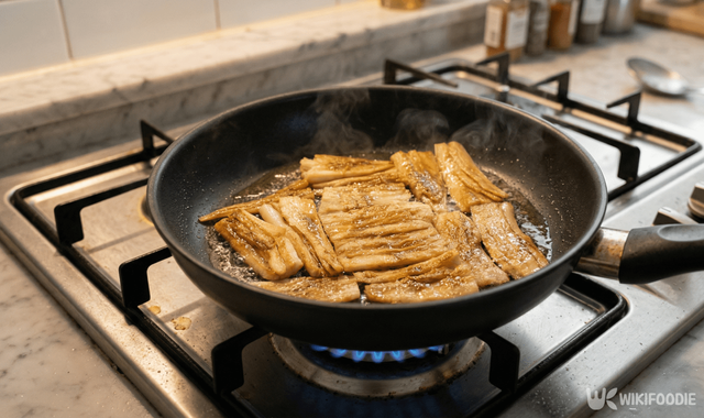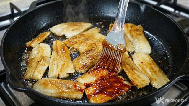 양념장을 바른 후에는 불 조절이 관건이다. 고추장과 올리고당이 들어간 양념은 금방 타기 때문에 반드시 약한 불에서 조절해야 한다. 팬을 미리 달구지 말고, 불을 올림과 동시에 더덕을 올려 1분 정도씩 앞뒤로 구워가며 상태를 살핀다.