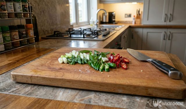 양파는 결대로 채 썰고, 파와 고추는 어슷하게 썬다. 이는 요리의 색을 좋게 만드는 역할을 한다.