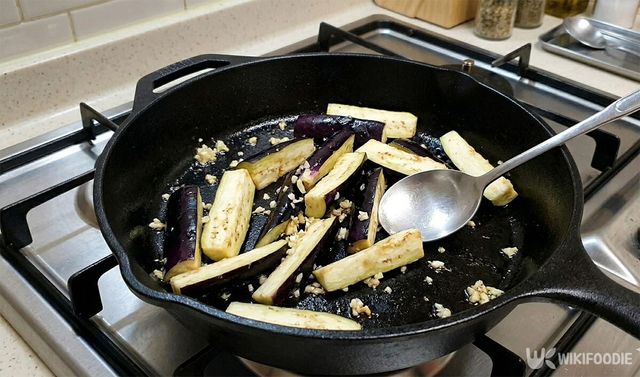충분한 기름은 가지의 떫은맛을 잡고 부드럽게 만든다.