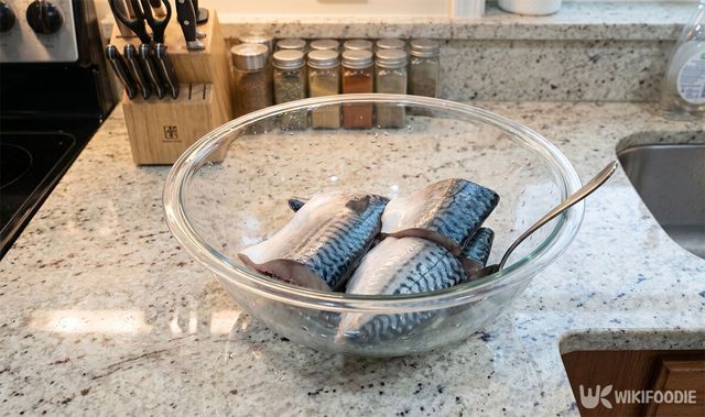 고등어를 끓는 물에 살짝 데쳐 불순물을 제거한 뒤 흐르는 물에 헹군다.