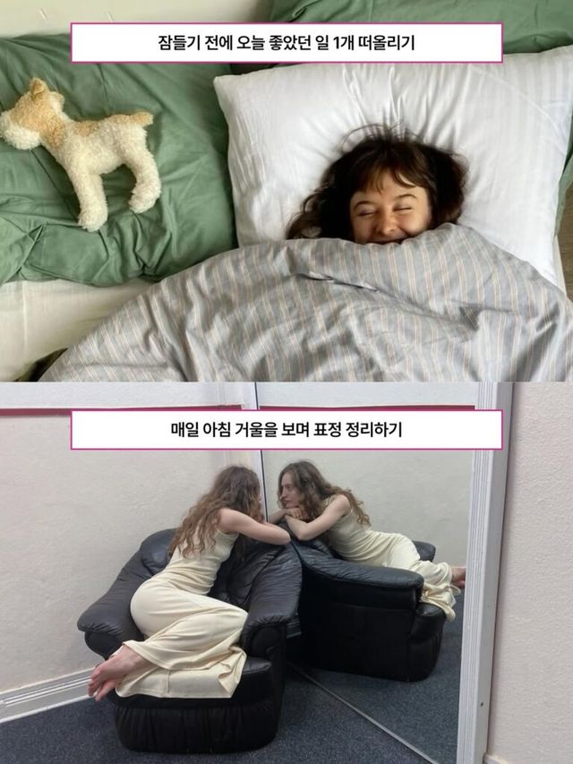 - 잠들기 전에 오늘 좋았던 일 1개 떠올리기
