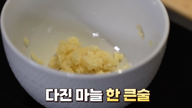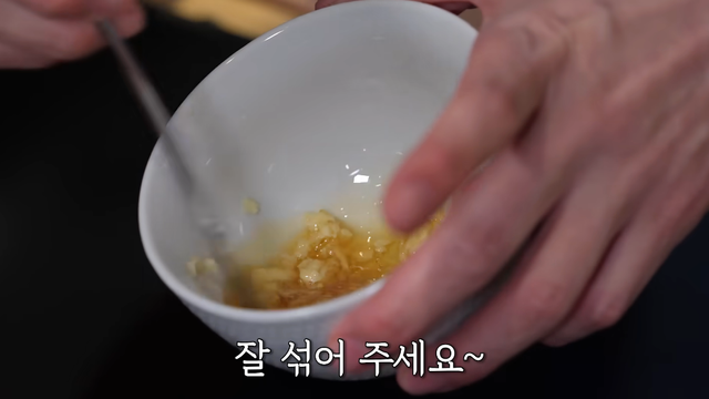 2. 다진 마늘 한 큰술에 참기름 3~4큰술을 섞어 소스를 만든다.