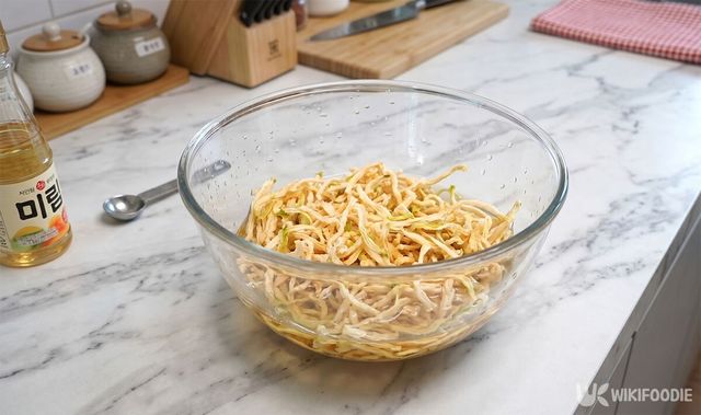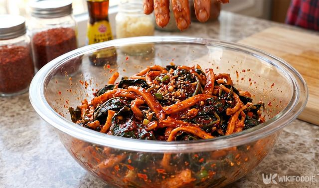 양념 전에는 무말랭이를 손으로 꽉 짜서 물기를 확실히 없애야 한다. 수분이 많으면 나중에 양념이 묽어지고 식감이 흐트러진다.