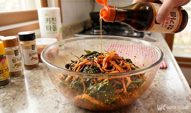 참기름과 통깨를 뿌려 고소하게 마무리한다.