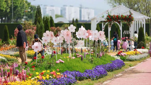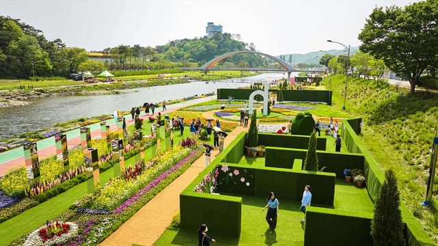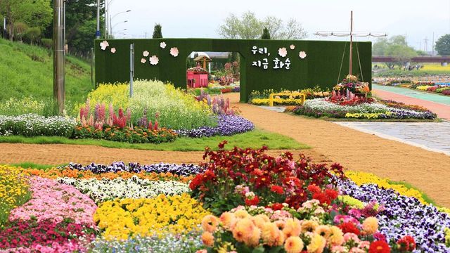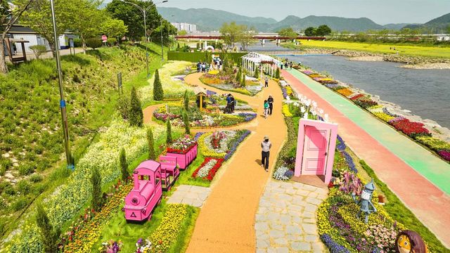 꽃강길 전 구간은 5개의 테마 정원으로 나뉜다. 웰컴가든, 플로라가든, 봄꽃정원, 생태정원, 어린이정원. 각각 콘셉트가 다르다. 유럽식 기하학 정원부터 아이들이 뛰어놀 수 있는 동화형 공간까지, 구역마다 분위기가 달라 길을 따라 걷는 것만으로 다양한 경험이 쌓인다.