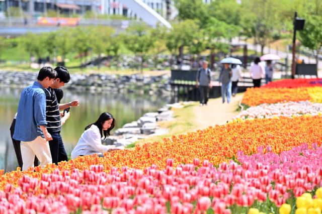 꽃의 향연은 미사호수공원에서 정점을 찍는다. 하남시가 정성껏 가꾼 튤립과 수선화가 형형색색의 얼굴을 내밀며 방문객을 반기고 있다.