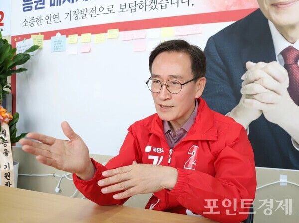 국민의힘 정명시 기장군수 예비후보가 16일 오전 본지와의 인터뷰를 통해 6.3 지방선거에 임하는 각오와 의지를 밝히고 있다. (사진=윤선영) ⓒ포인트경제