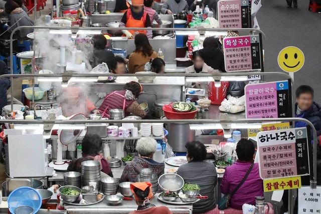 칼국수뿐만이 아니다. 냉면(1만2538원), 비빔밥(1만1615원), 삼계탕(1만8154원) 등 주요 외식 메뉴 대부분이 이미 1만원을 넘어선 상태고, 1만원 아래로 남은 메뉴는 김치찌개백반(8654원), 자장면(7692원), 김밥(3800원) 정도다. 이 품목들도 1년 전과 비교하면 안심할 수준이 아니다. 서울 기준 김밥은 지난해 3월 대비 5.5%, 칼국수는 5.3% 올랐고, 삼계탕(4.6%), 삼겹살(4.3%), 냉면(3.5%) 등도 큰 오름폭을 기록했다.