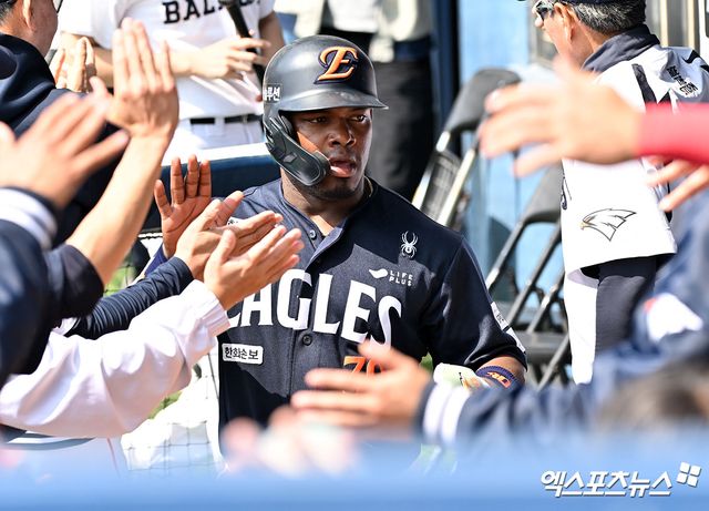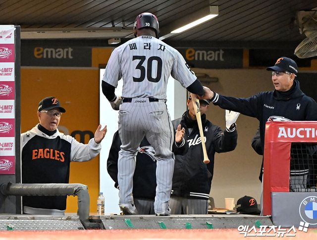 (엑스포츠뉴스 부산, 유준상 기자) 김경문 한화 이글스 감독이 외국인 타자 요나단 페라자를 격려했다.