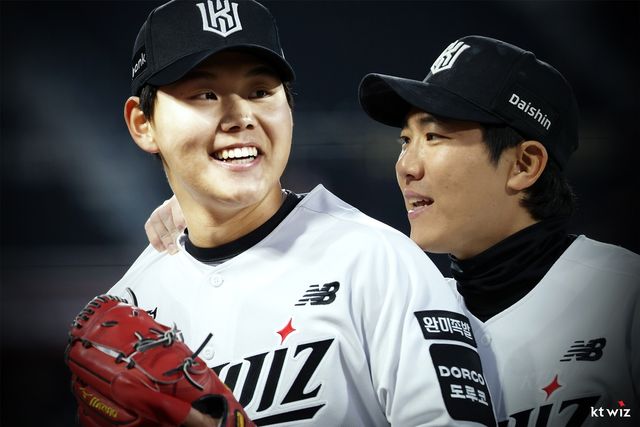 한편 이날 KT는 최원준(우익수)~김상수(2루수)~김현수(1루수)~장성우(지명타자)~샘 힐리어드(좌익수)~배정대(중견수)~장준원(3루수)~한승택(포수)~이강민(유격수)이 선발로 나선다. 전날과 비교해 장성우가 지명타자로 출전하면서 김현수가 1루수, 한승택이 포수로 출전했다.